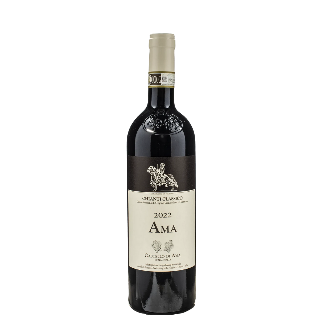 Castello di Ama, located in Gaiole in Chianti, is one of the most respected wineries in Chianti Classico; founded in the 1970s by four families, it has built its reputation under Marco Pallanti and Lorenza Sebasti for sustainability, the valorization of historic vineyards, and careful vineyard practices. The “Ama” cuvée was introduced in 2010 to distinguish more generous young‑vine expressions from the estate’s top‑tier labels, allowing a more accessible Sangiovese that still expresses terroir. Ama is made from sustainably farmed vineyards (Equalitas certification) with selective clonal material.