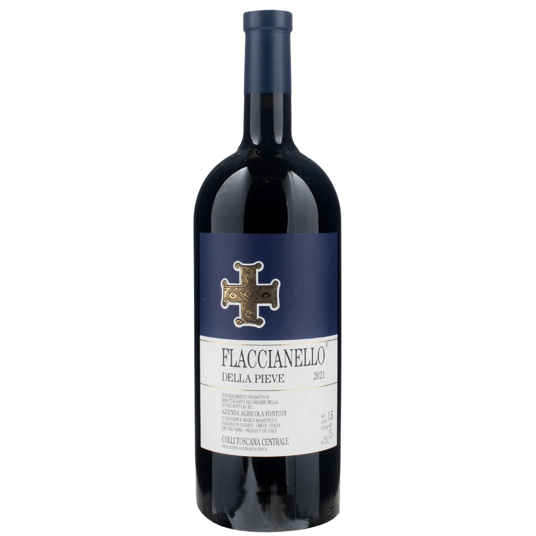 Flaccianello della Pieve is the iconic 100% Sangiovese of Fontodi, located in the heart of Chianti Classico, in Panzano. The first vintage dates back to 1981—a pioneering move that helped shape modern Tuscan winemaking. The 2021 Magnum comes from a rigorous selection of organically farmed grapes grown on galestro soils at altitude. This larger format enhances the wine’s ability to age gracefully over time.